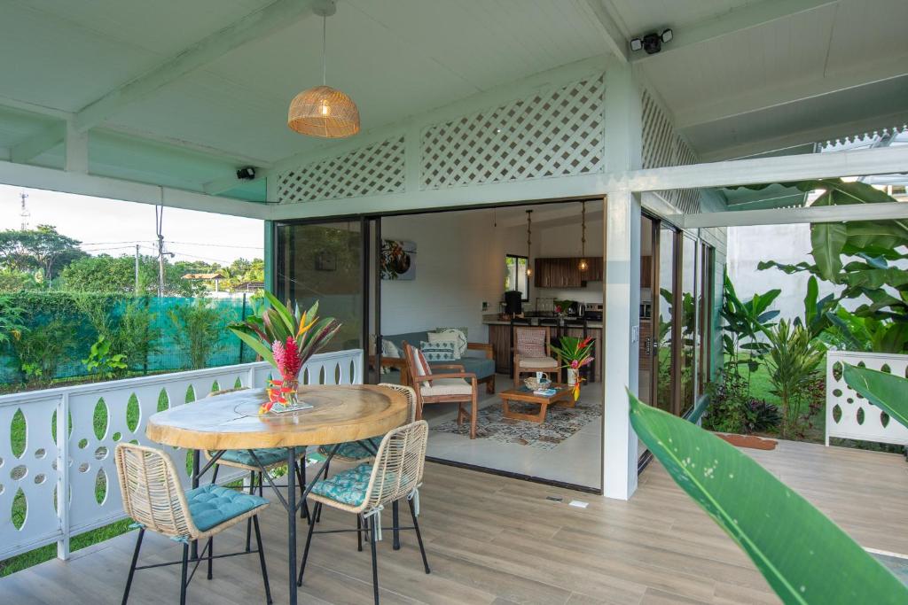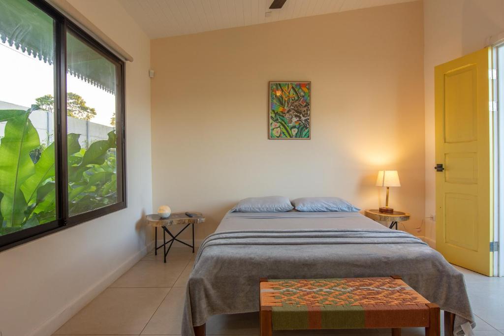 Two bedroom vacation rental home with small private pool. Equipped kitchen. Living room. Bedrooms with A/C and private bath. Parking.